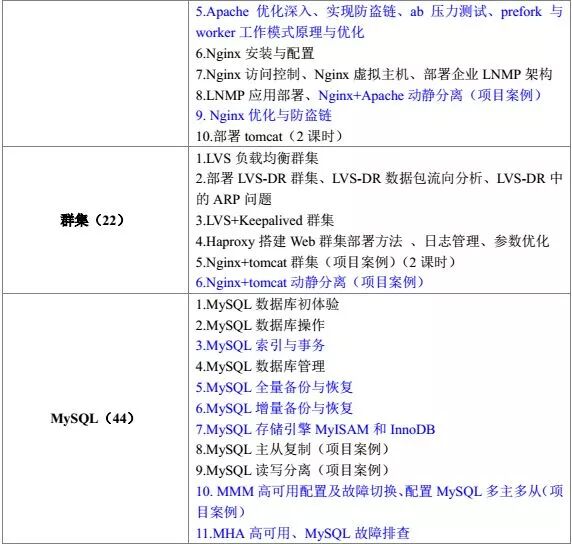 模块:Shell脚本、Liunx安全、Web服务器、群集、Mysql